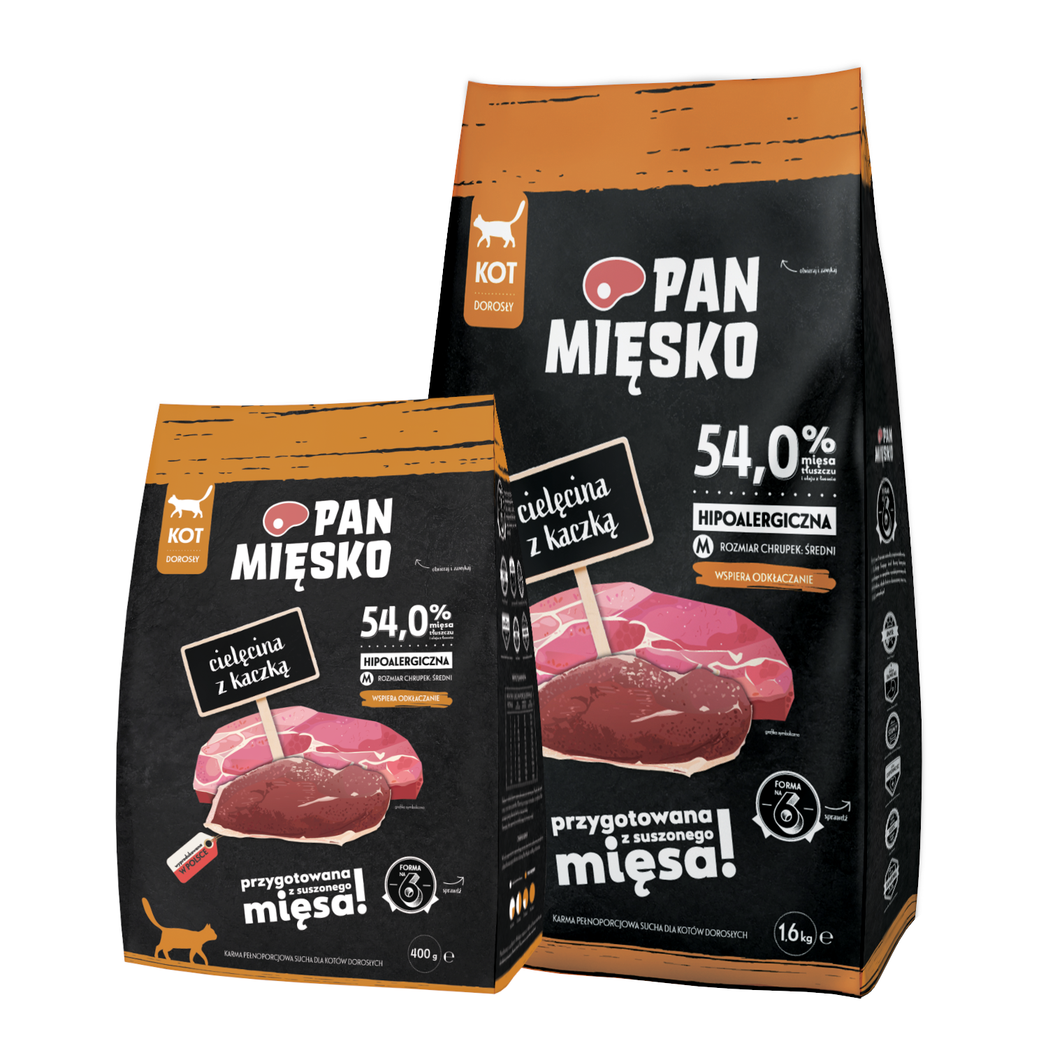 Pan Mięsko (cielęcina z kaczką) M 0,4kg/1,6kg/5kg – sucha karma dla kotów