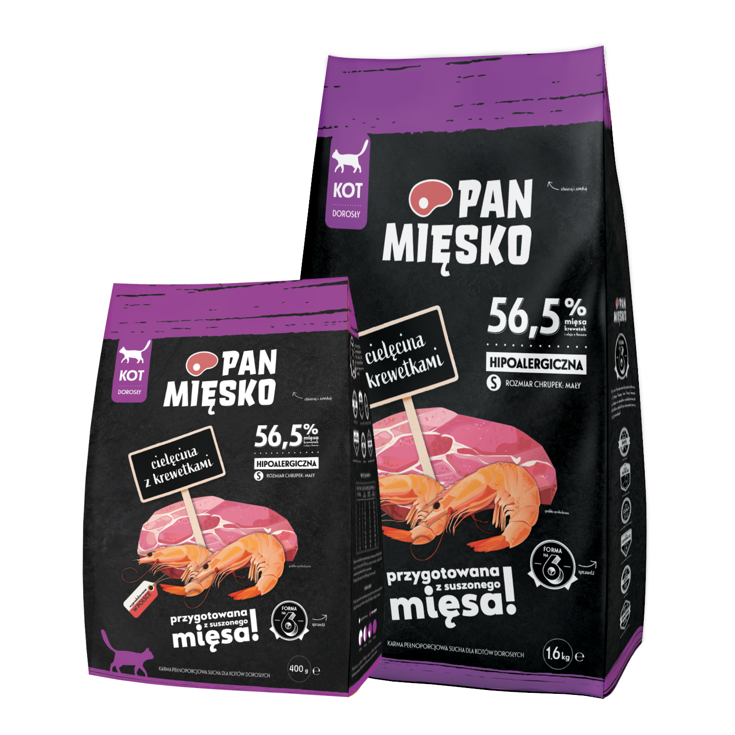 Pan Mięsko (cielęcina z krewetkami) S 0,4kg/1,6kg – sucha karma dla kotów