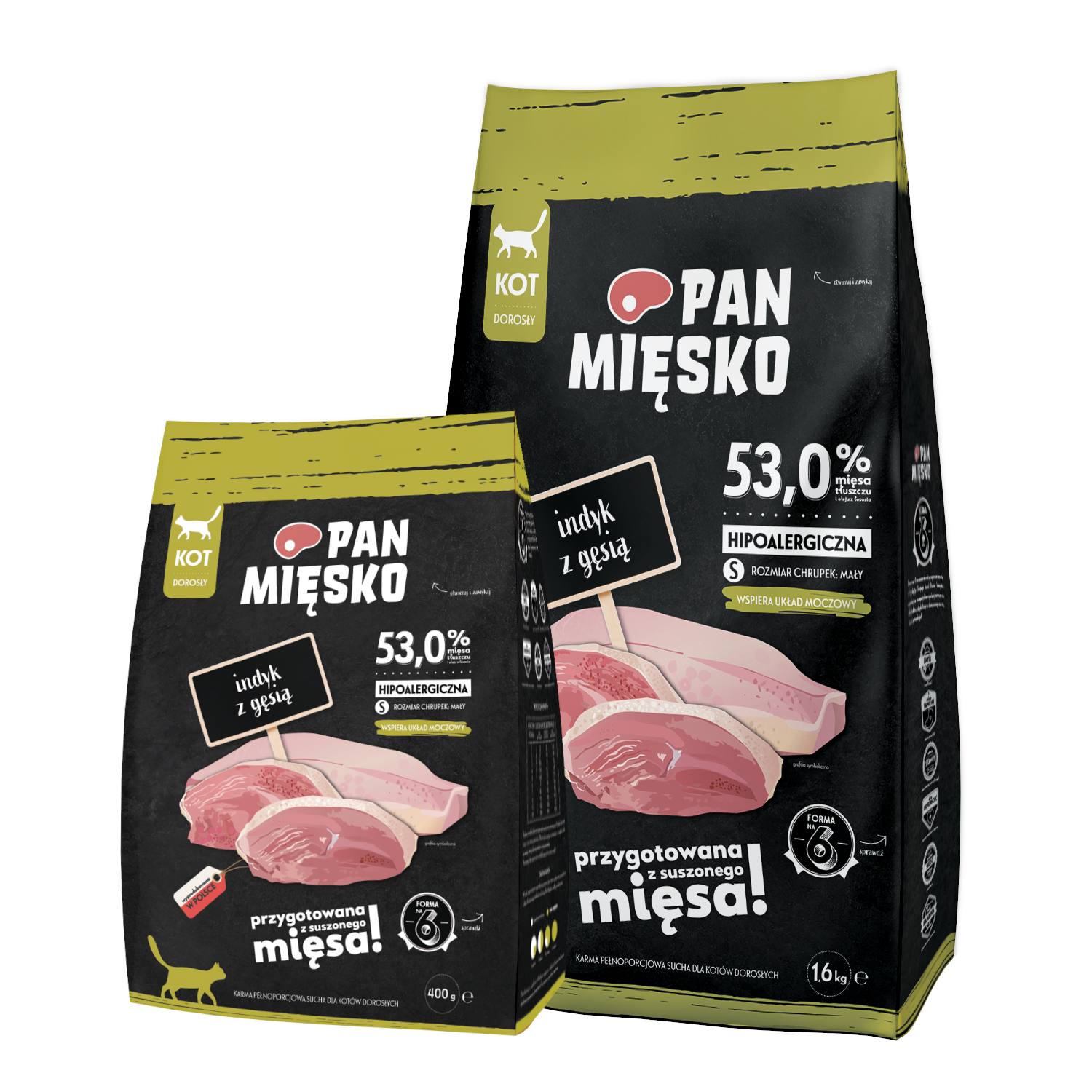 Pan Mięsko (indyk z gęsią) S 0,4kg/1,6kg – sucha karma dla kotów