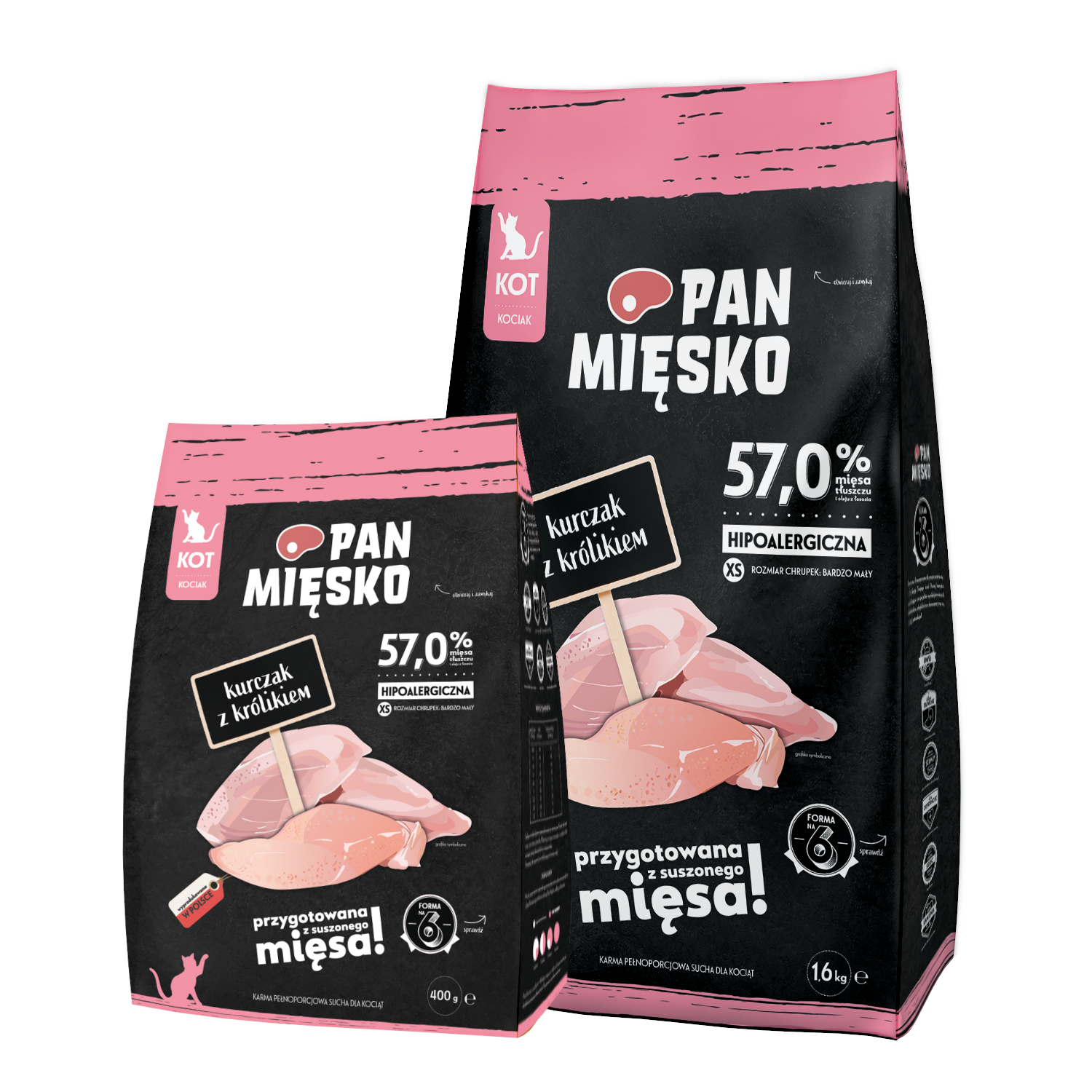 Pan Mięsko (kurczak z królikiem) XS 0,4kg/1,6kg – sucha karma dla kociąt