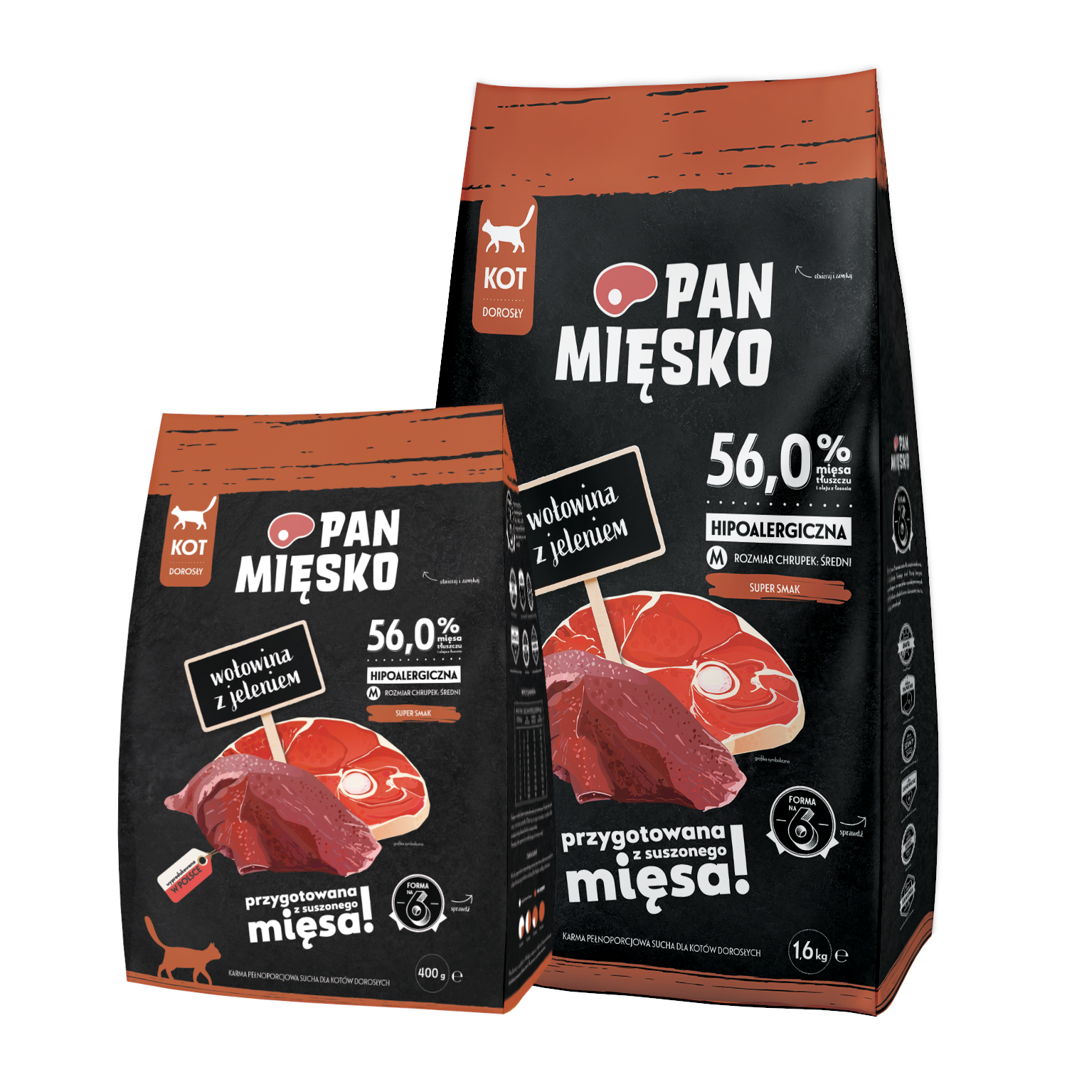 Pan Mięsko (wołowina z jeleniem) M 0,4kg/1,6kg – sucha karma dla kotów