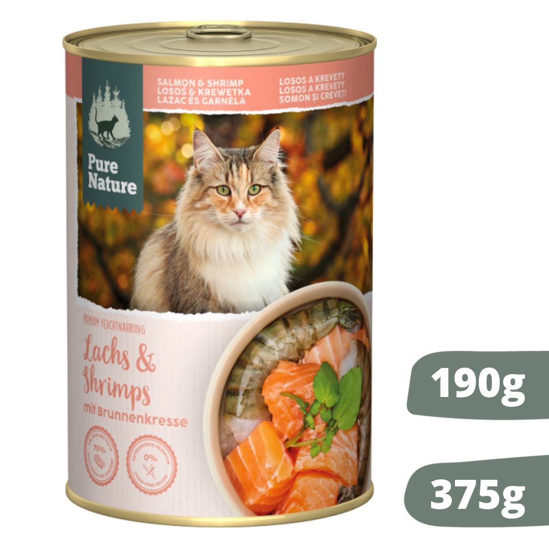 Pure Nature Cat łosoś z krewetkami puszka 190g/375g – mokra karma dla kotów