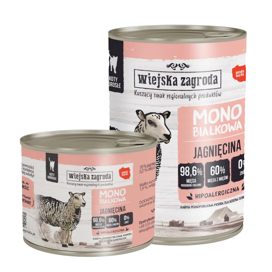 Wiejska Zagroda MONO 200g/400g jagnięcina – mokra karma dla kotów