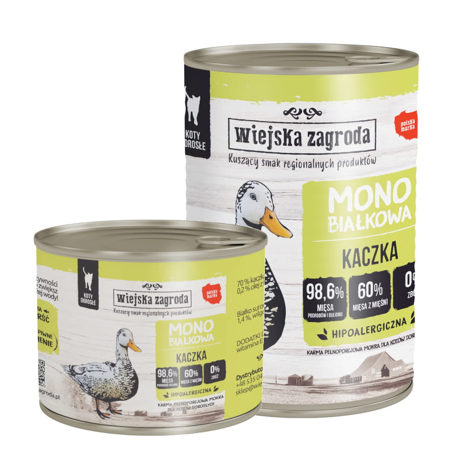Wiejska Zagroda MONO 200g/400g kaczka – mokra karma dla kotów
