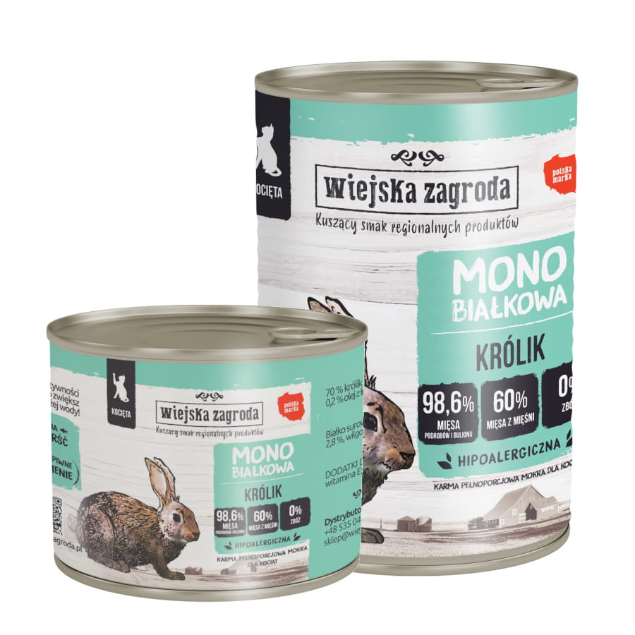 Wiejska Zagroda MONO 200g/400g królik – mokra karma dla kociąt