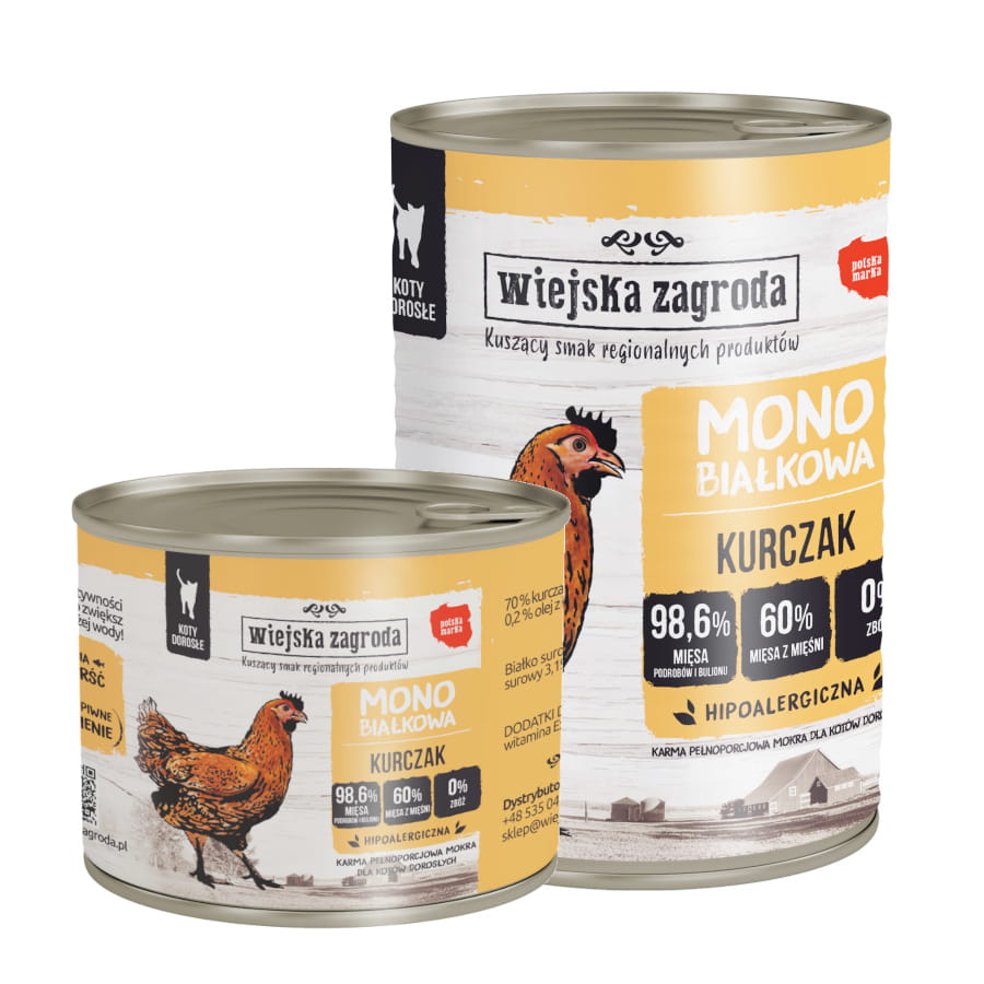 Wiejska Zagroda MONO 200g/400g kurczak – mokra karma dla kotów