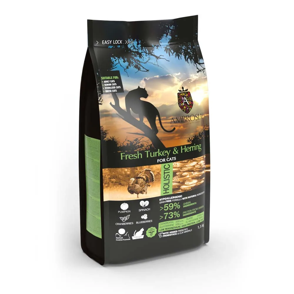 Ambrosia Adult Cat Light indyk i śledź 1,5kg – sucha karma dla kotów