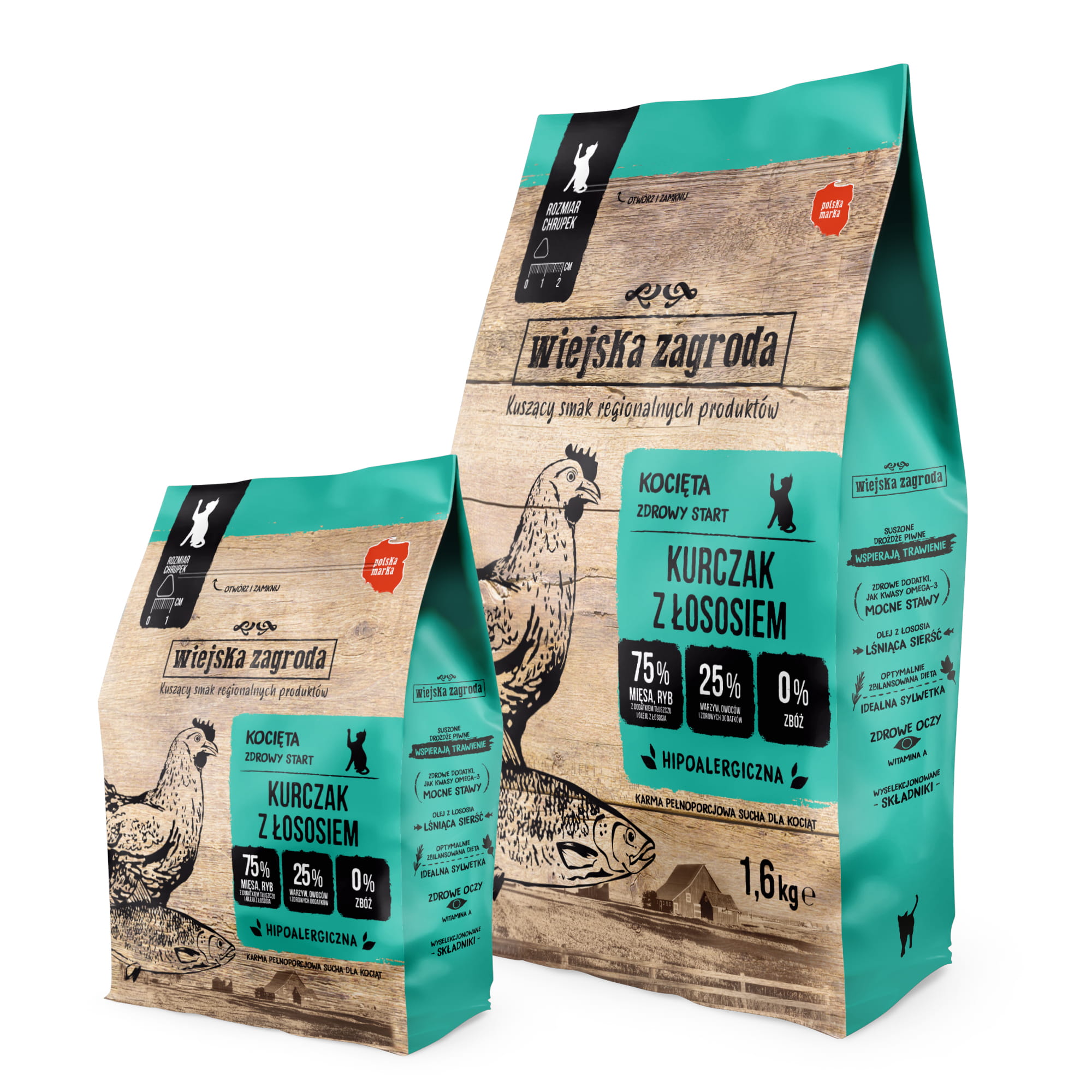 Wiejska Zagroda(kurczak z łososiem) 0,4kg/1,6kg – sucha karma dla kociąt