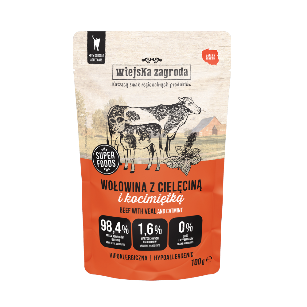 Wiejska Zagroda pasztet Wołowina z Cielęciną i kocimiętka 100g – mokra karma dla kotów