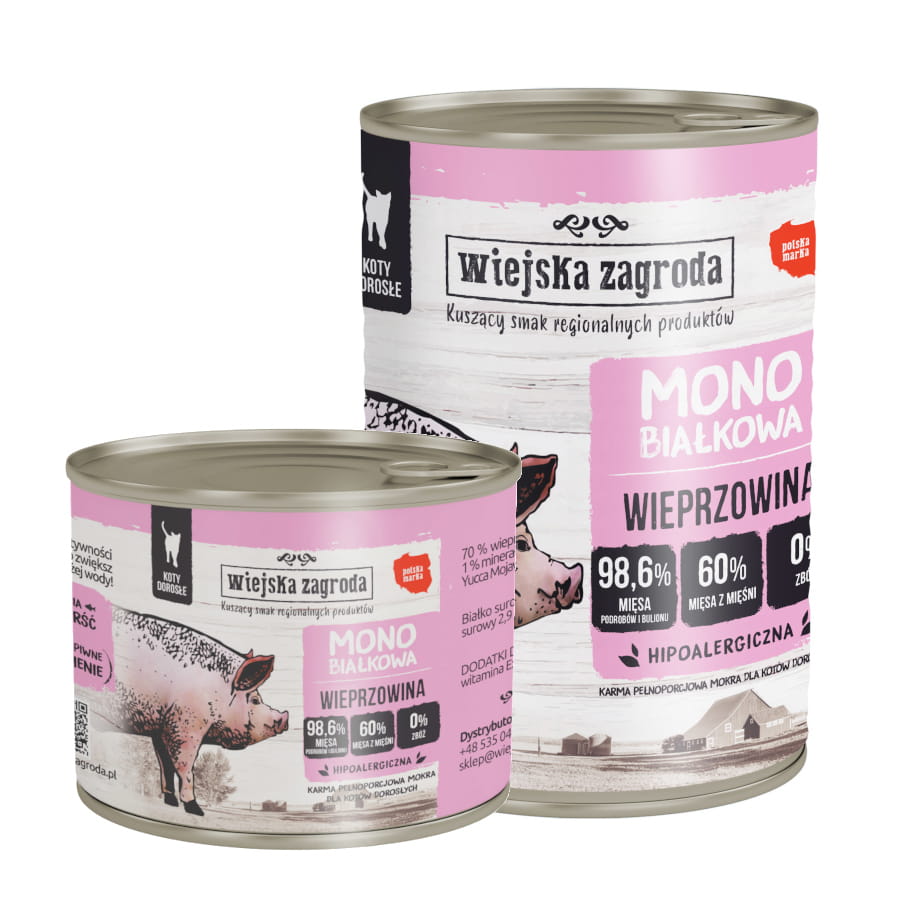 Wiejska Zagroda MONO 200g/400g wieprzowina – mokra karma dla kotów