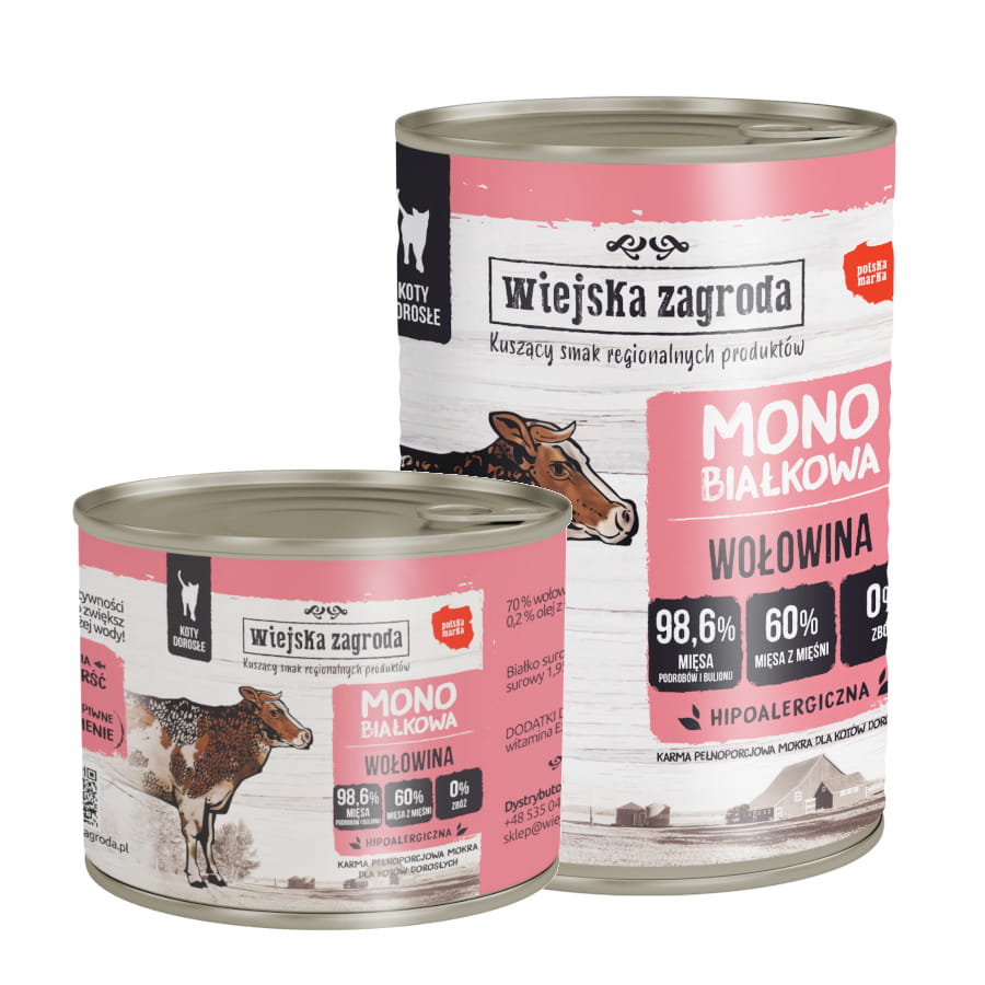Wiejska Zagroda MONO 200g/400g wołowina – mokra karma dla kotów