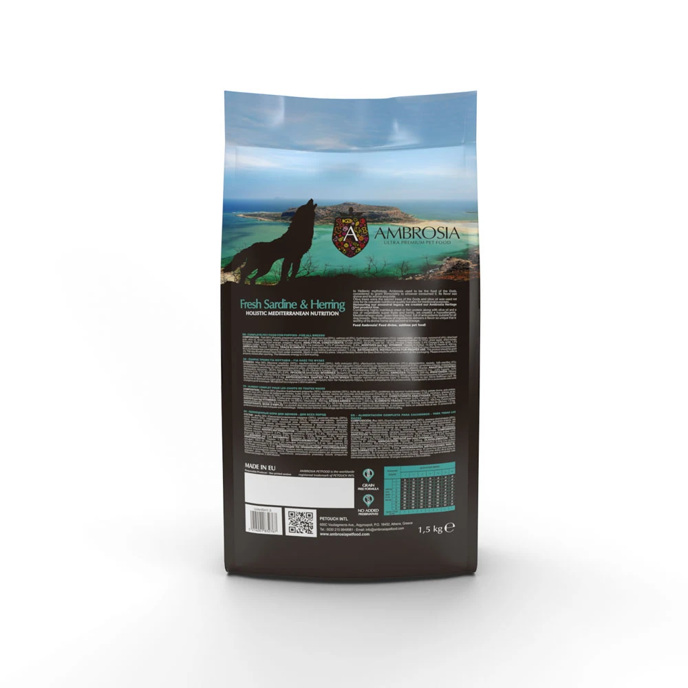 Ambrosia Mediterranean PUPPY Sardynka Śledź 1,5kg / 5kg – sucha karma dla szczeniąt
