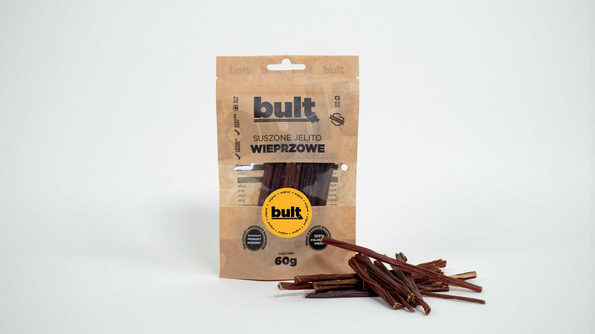 Dzięki specjalistycznemu procesowi suszenia jelito zachowuje wszelkie wartości odżywcze oraz minerały. Przekąska nadaje się dla psów wszystkich ras i wielkości. Może stanowić świetne uzupełnienie podstawowej diety złożonej z suchej karmy BULT.