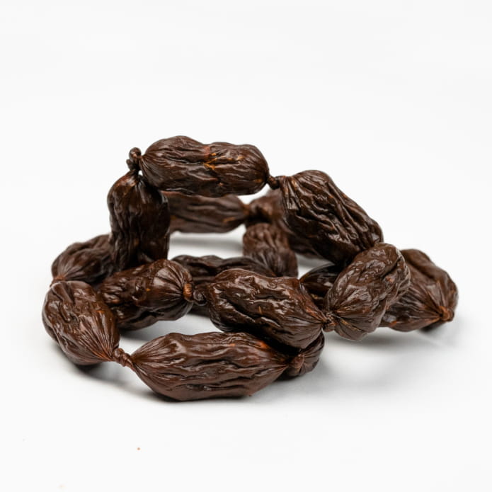 - Zajęcie dla zębów - żucie serdelków zaspokaja naturalną potrzebę i pomaga w usuwaniu płytki nazębnej oraz zapobiega tworzeniu się kamienia nazębnego. Naturalny gryzak jest nie tylko smaczny, ale także przydatny w utrzymaniu zdrowia jamy ustnej.