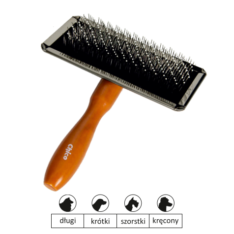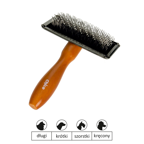 Drewniana szczotka idealnie sprawdzi się do czesania krótkiej, szorstkiej, kręconej oraz długiej sierści.