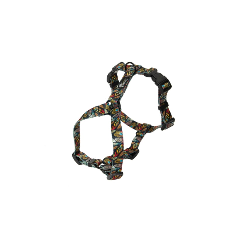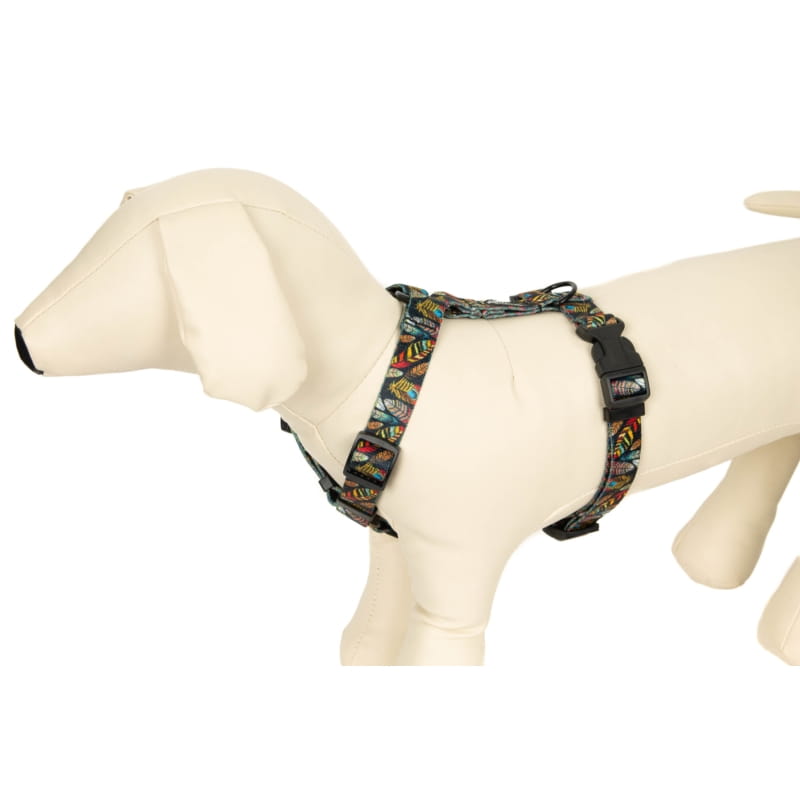 Swoboda, bezpieczeństwo, wygoda. Są to 3 słowa definiujące szelki taśmowe typu guard Chico Trend. Wyjątkowy wzór piórek, pasuje do każdego typu umaszczenia psa i wyróżnia się oryginalnością.