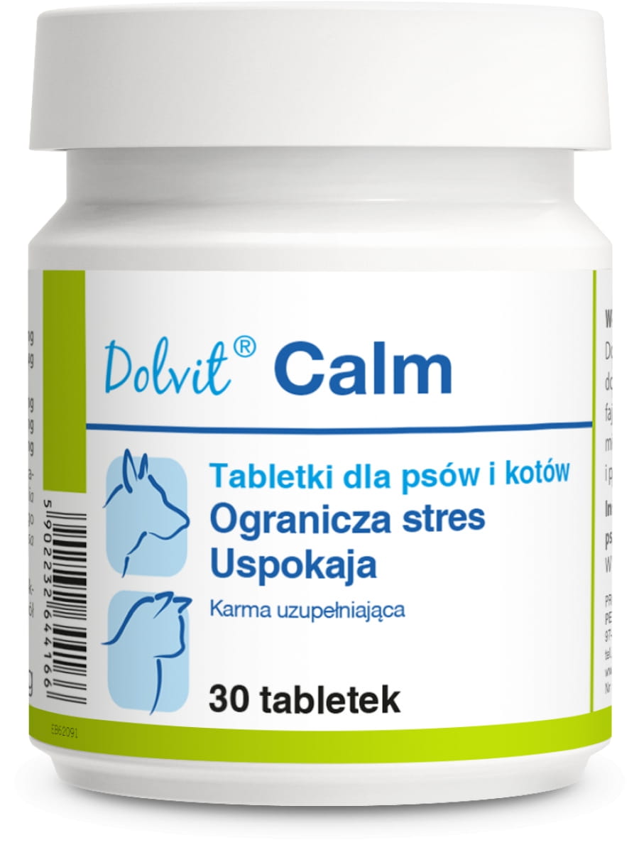 Dolvit Calm to naturalny preparat dla psów i kotów zalecany do podawania w sytuacjach stresowych: podróż, wystawa, burza, fajerwerki, wizyta u lekarza, długotrwałe leczenie, spotkanie z innymi zwierzętami itp. Składniki preparatu mają działanie uspokajające, zmniejszają poziom stresu.