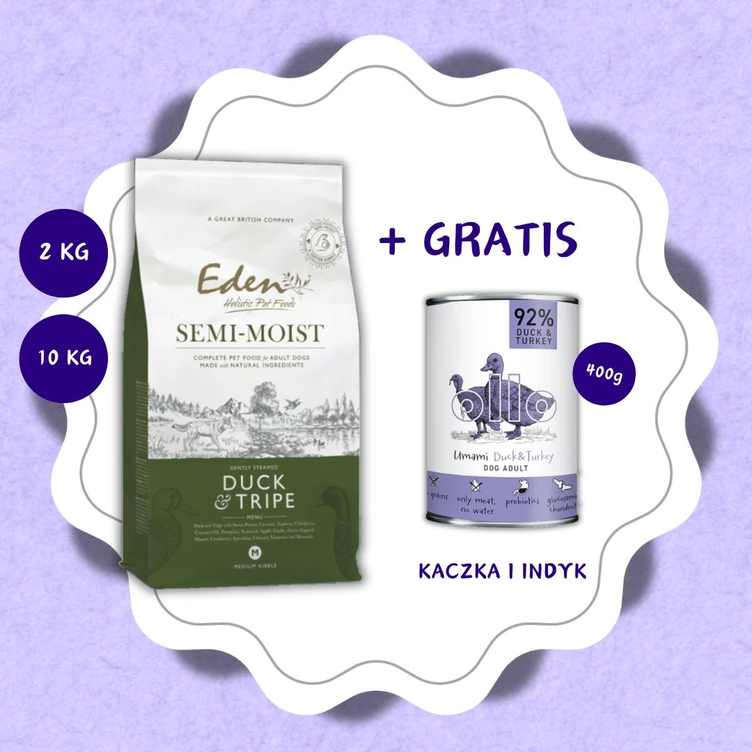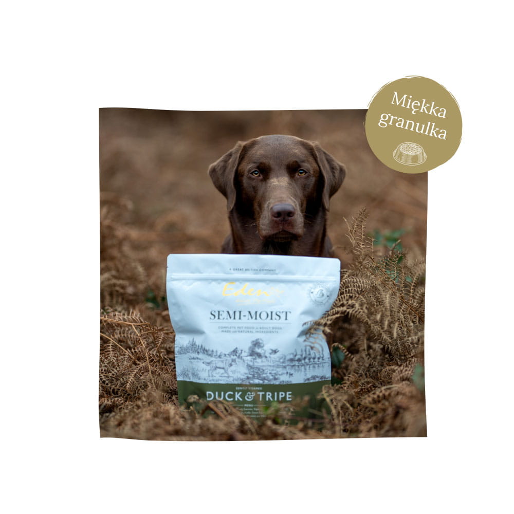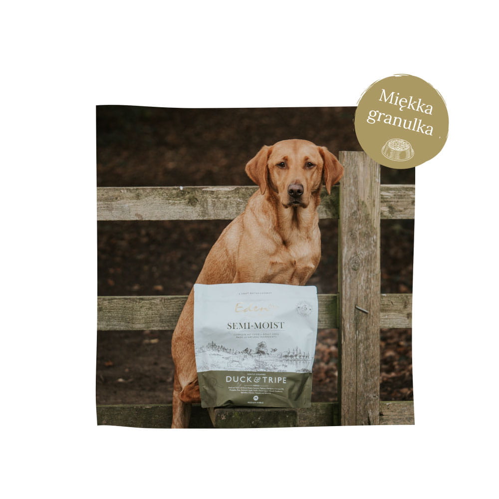 Pół-wilgotna karma Kaczka & Żołądki przygotowana ze świeżej kaczki i żołądków jagnięcych.