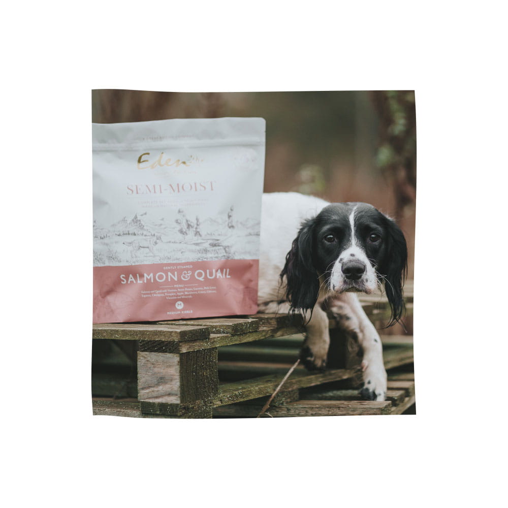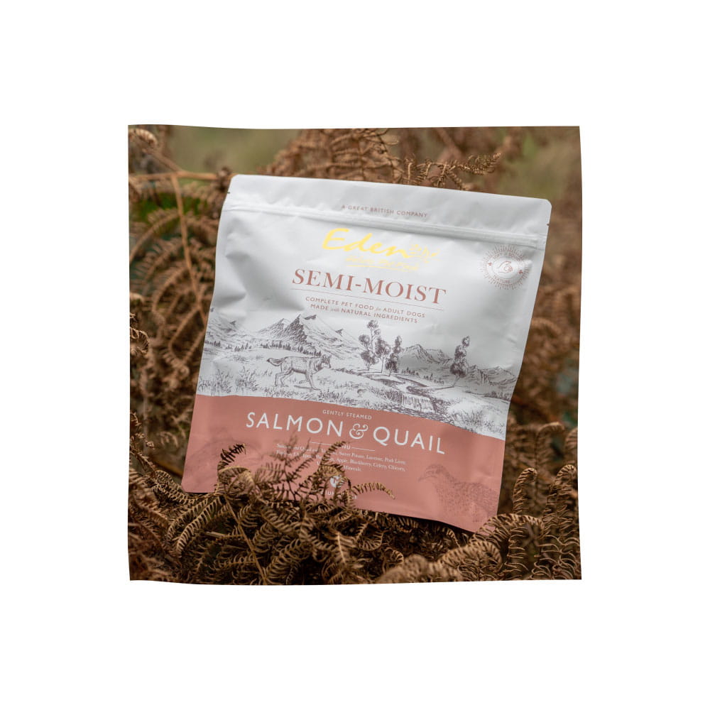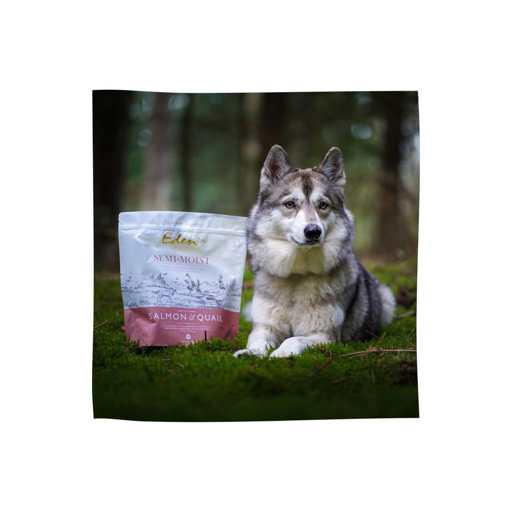 Eden o smaku łososia i przepiórki może być doskonałym wyborem dla psów z alergiami. Starannie dobrane białka z łososia, przepiórki, wątróbki wieprzowej i dziczyzny stanowią główne składniki karmy. Zarówno łosoś, jak i przepiórka mają doskonałe właściwości zdrowotne dla skóry i sierści. Przepiórka jest bogata w witaminę E (wspiera zdrową skórę), a łosoś jest doskonałym źródłem kwasów omega 3 (pomagają utrzymać lśniącą i zdrową sierść Twojego psa).