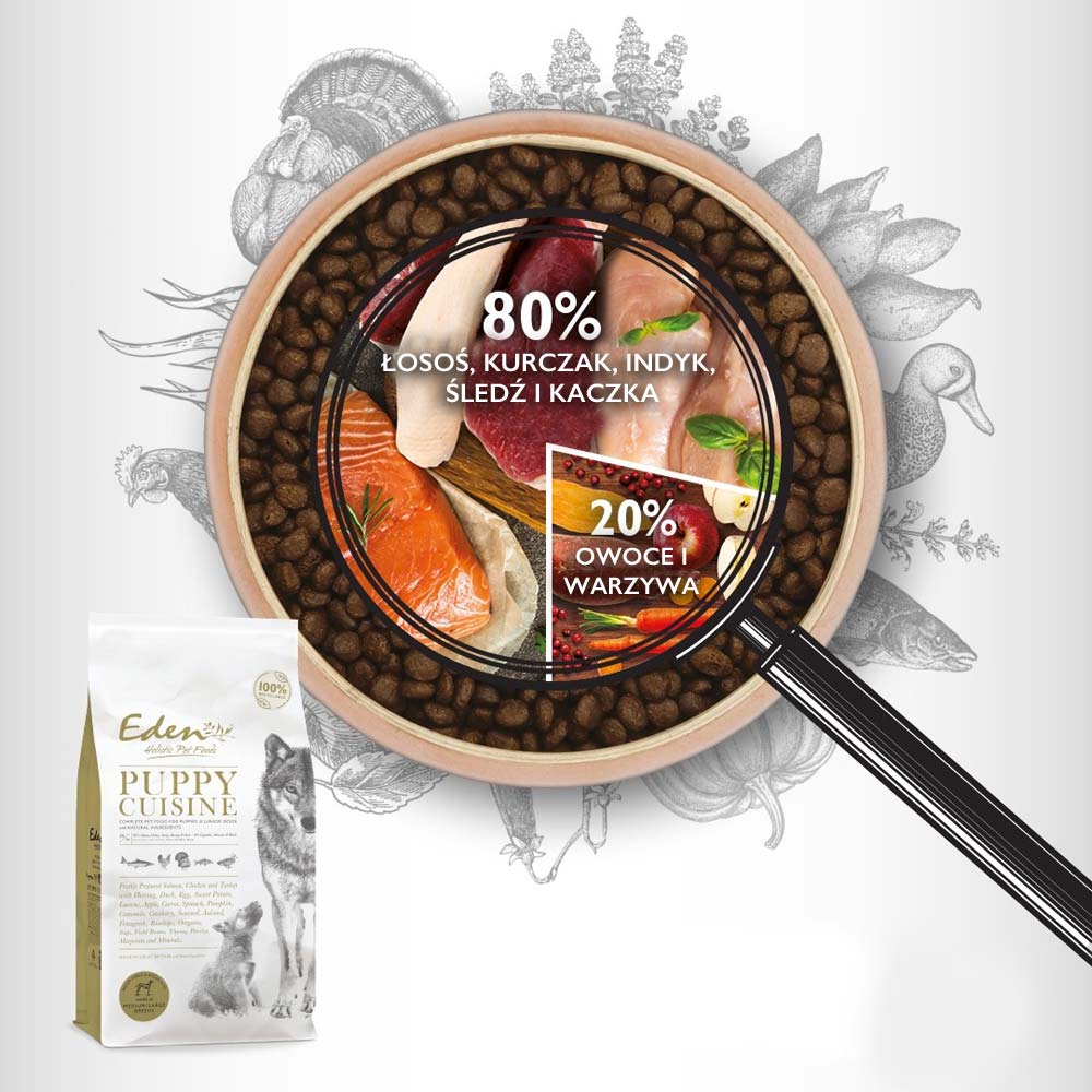 Nowa karma pełnoporcjowa to bardzo dobrze zbilansowany posiłek dla najmłodszych czworonogów małych, średnich i dużych ras. Oznacza to, że w każdym daniu dostarczona jest niezbędna ilość składników odżywczych do pełnego zoptymalizowania zdrowia i zaspokojenia wszystkich potrzeb żywieniowych Twojego pupila.