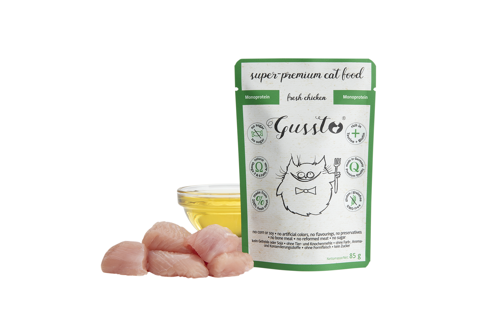 Pełnowartościowa, kompletna i znakomicie zbilansowana karma Superpremium dla kotów. Gussto to esencja dobrego i zdrowego żywienia. Zawiera bardzo dużo mięsa idealnie odpowiadając specyficznym wymaganiom pokarmowym kotów.