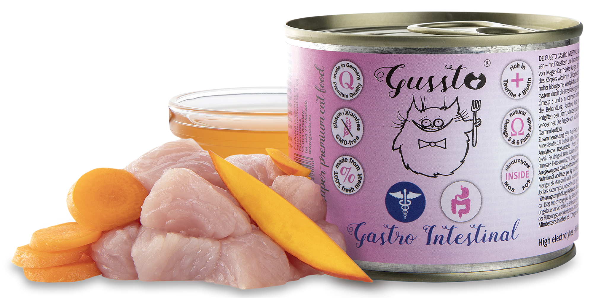Dodatki żywnościowe ważne dla fizjologii odżywiania/kg: witamina D3 220 IE, cynk jako siarczan cynku, monohydrat 27,5 mg, mangan jako siarczan manganu (II), monohydrat 1,5 mg, miedź jako siarczan miedzi 1mg, jod jako jodan wapnia 0,83 mg, DL-Metionina 2000 mg, Tauryna 2000 mg, Biotyna 330 µg.