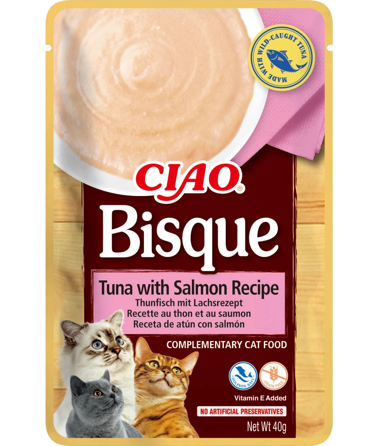 Skład: woda, kurczak, skrobia z tapioki, olej sojowy, naturalny aromat, naturalny aromat z przegrzebków, guma guar, olej rybny, witamina E, tauryna, ekstrakt z zielonej herbaty.