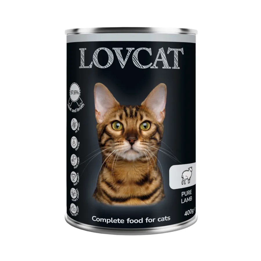 Pełnoporcjowa, wysokomięsna (aż 97,6% mięsa) karma dla kotów, idealnie zbilansowana dla wsparcia zdrowego rozwoju Twojego kota. Receptura oparta na świeżym mięsie najwyższej jakości. Mięso użyte w procesie tworzenia karmy LOVCAT spełnia najbardziej rygorystyczne normy. Każdy dodany składnik jest starannie selekcjonowany, aby oferowany kotu posiłek spełniał najwyższe standardy jakości karmy wilgotnej dla mięsożercy.