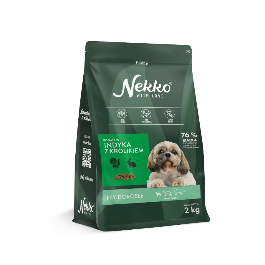 Bezzbożowa karma dla dorosłych psów małych ras. Odpowiednio dobrana receptura korzystnie wpływa na zdrowie i kondycję zwierzęcia. Specjalnie wyselekcjonowane składniki tworzą pełnowartościowy pokarm, który może być podstawą codziennej diety Twojego pupila. Karma Nekko polecana jest także psom alergikom ze względu na brak dodatku zbóż oraz brak kurczaka.