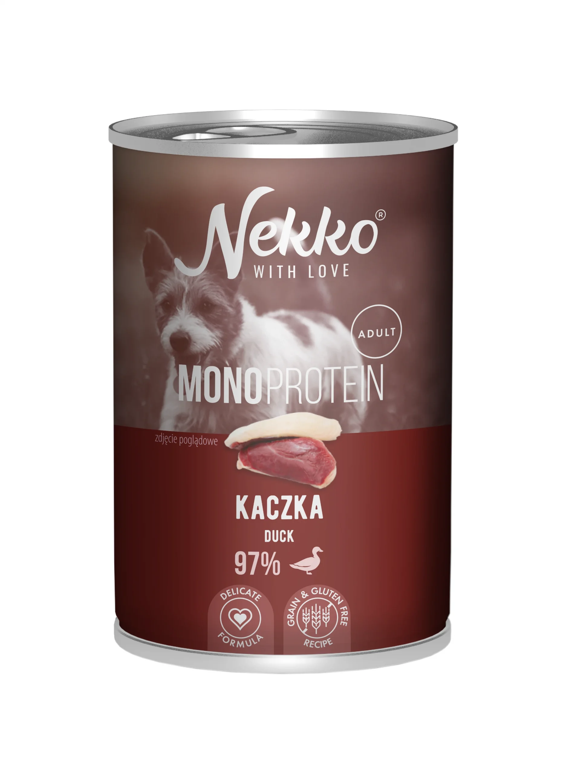 Mokra karma dla dorosłych psów w wersji monoproteinowej (zawiera jeden składnik pochodzenia zwierzęcego) wszystkich ras.