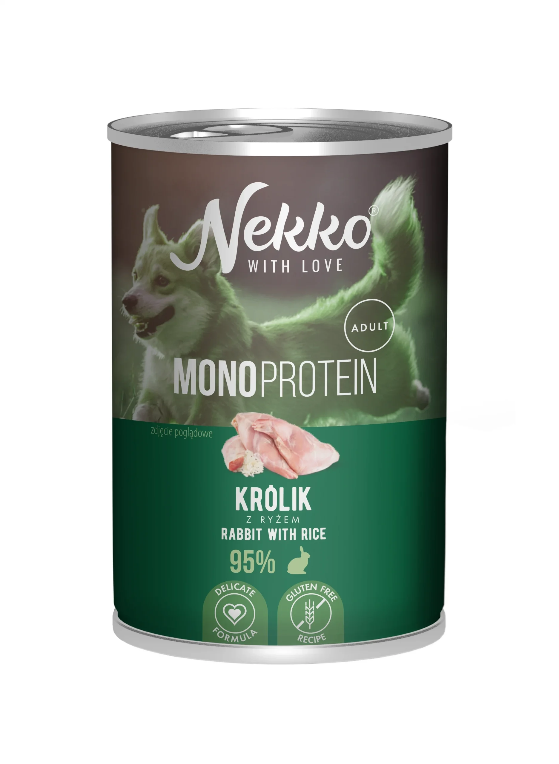 Skład: Królik 95%, Ryż 4%, olej słonecznikowy