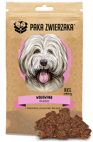 Przysmak z firmy Paka Zwierzaka Chunkies Wołowina 80g stanowi idealne uzupełnienie diety psa.