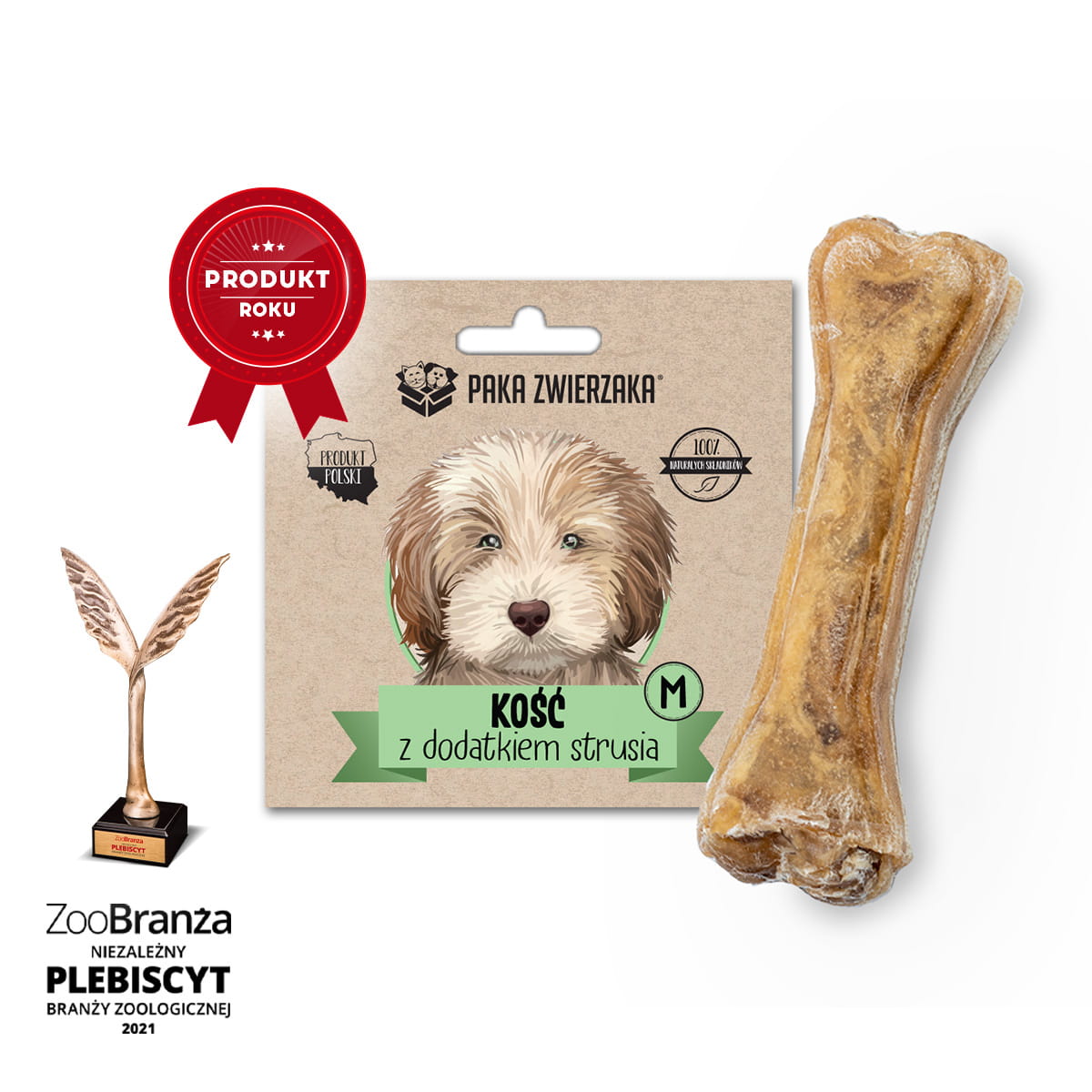 Paka Zwierzaka Kość z dodatkiem strusia S/M/L/XL – przysmak dla psów
