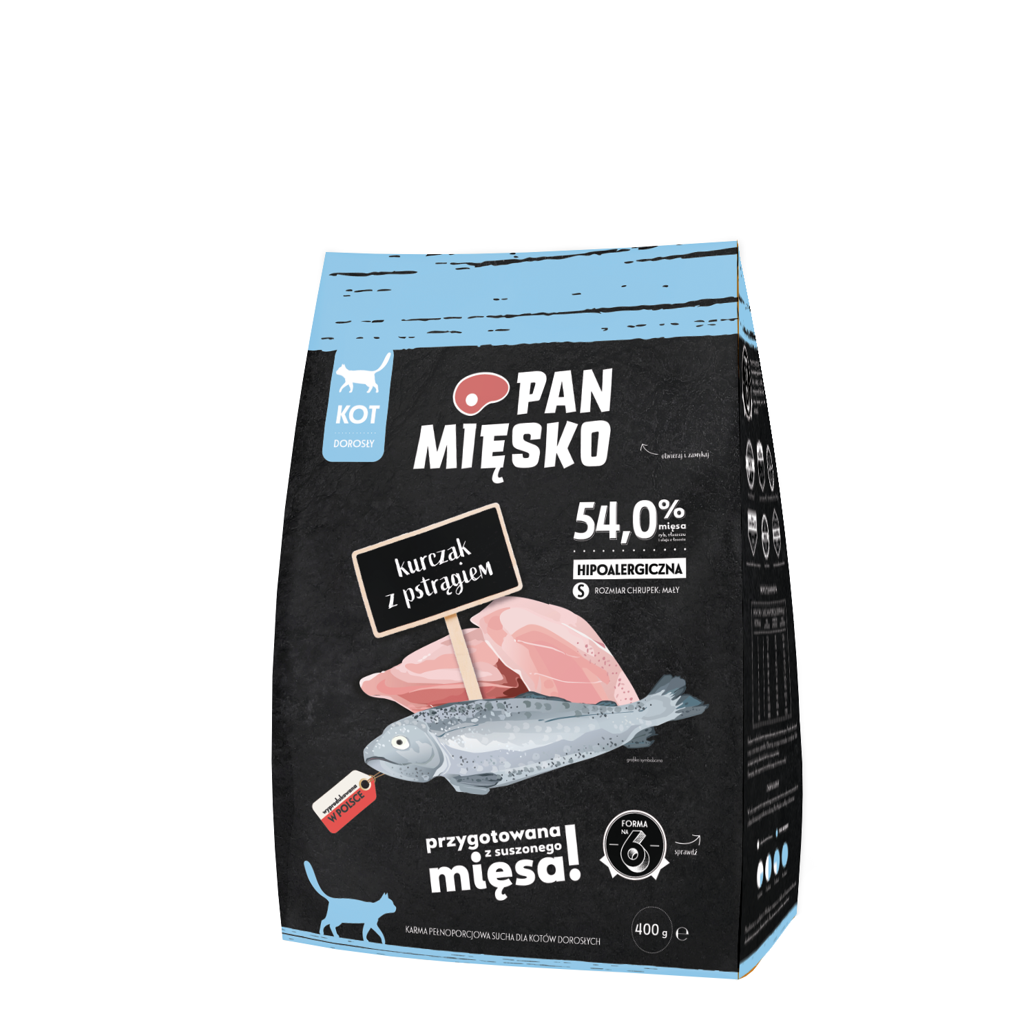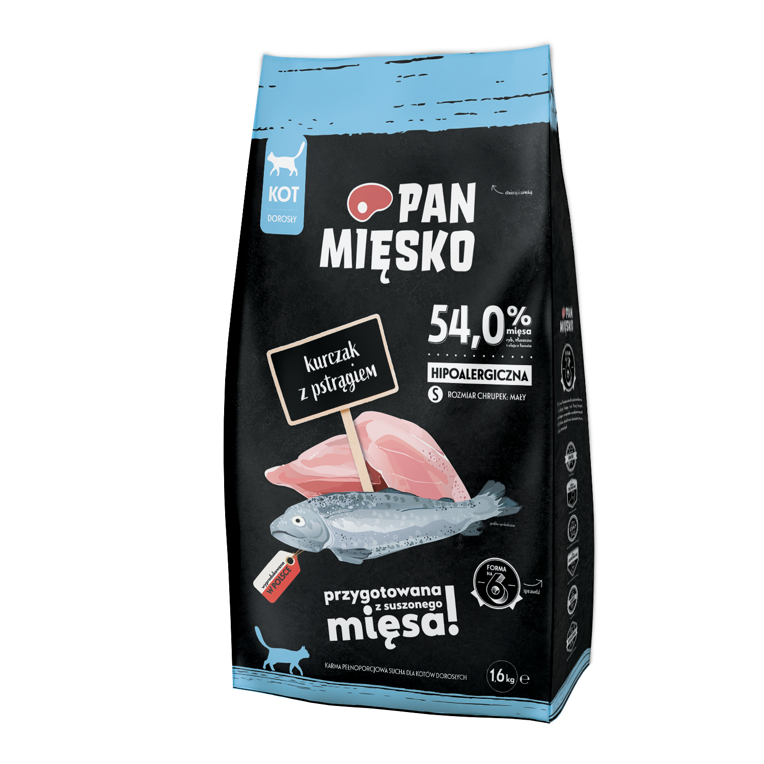 Pan Mięsko (kurczak z pstrągiem) S 0,4kg/1,6kg – sucha karma dla kotów