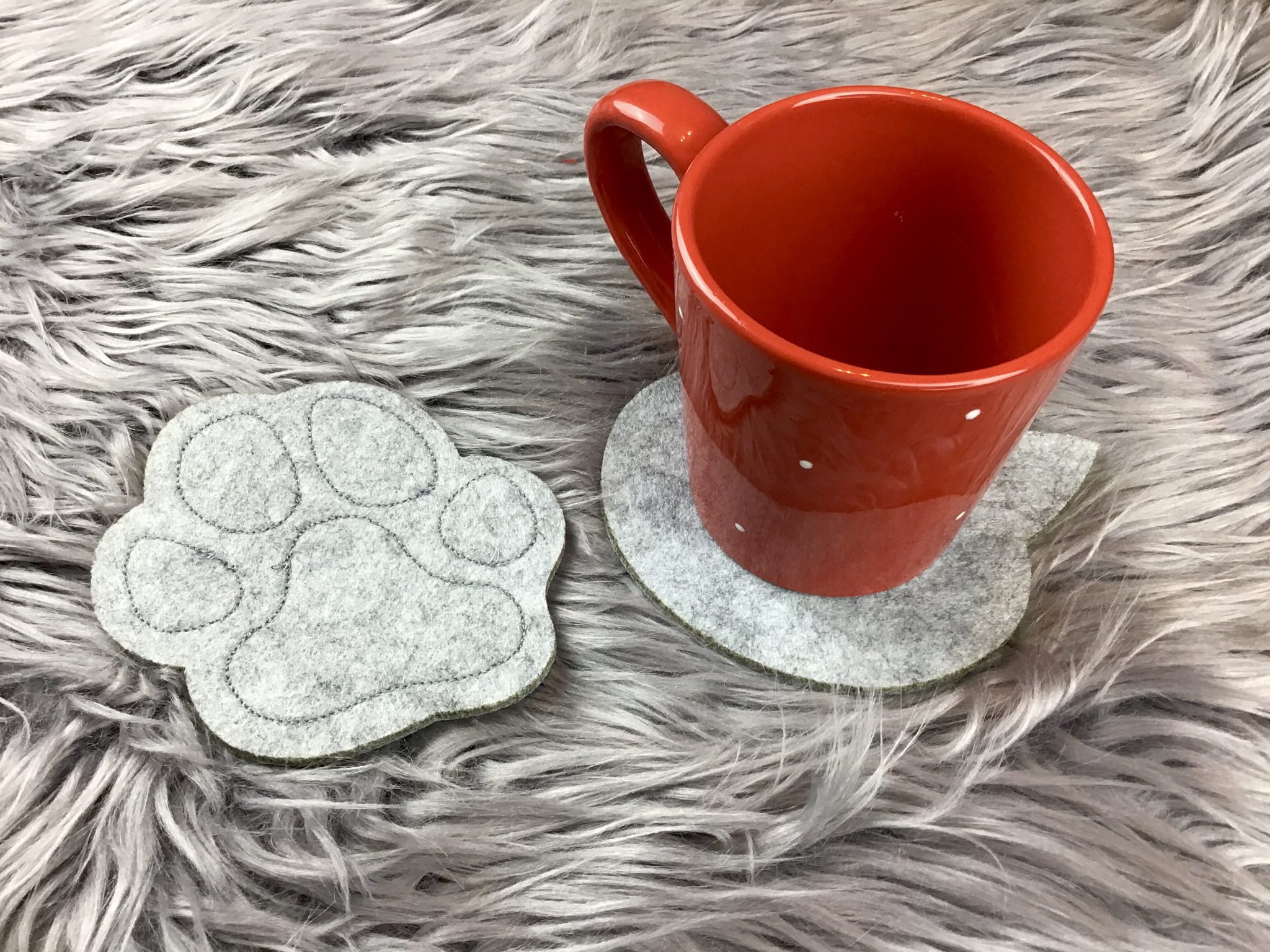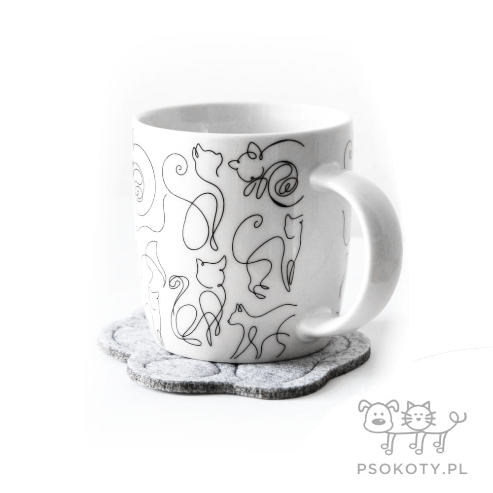 Filcowa podkładka pod kubek w kształcie łapki kota