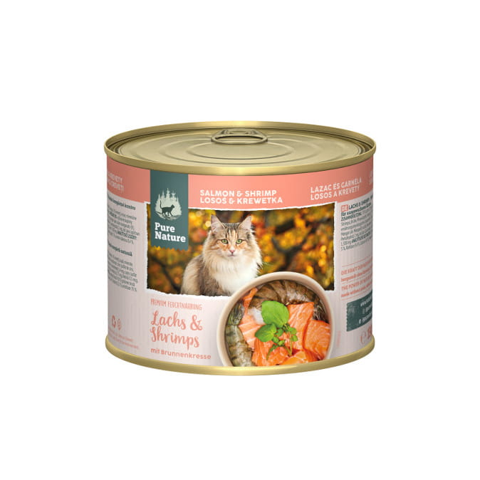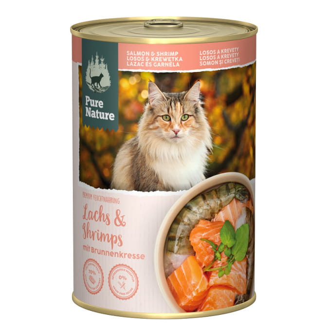 PURE NATURE CAT Lachs Shrimps - łosoś z krewetkami i olejem z krokosza - mokra karma dla dorosłych kotów w puszce 190g lub 375g