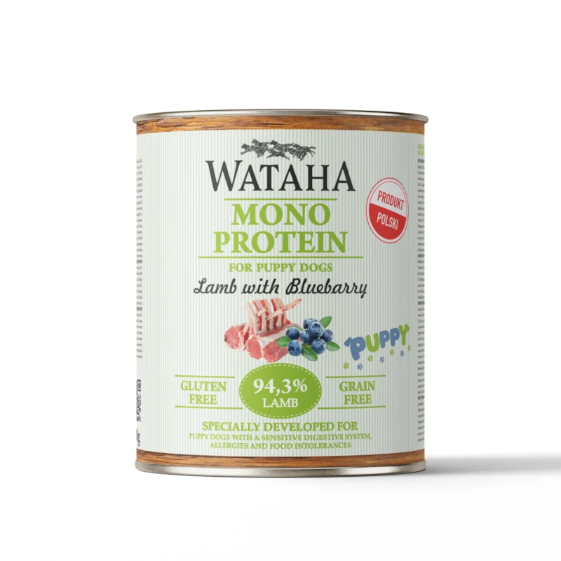 Skład: Jagnięcina 94,3%: 35% mięso mięśniowe, 26,3% bulion jagnięcy, 13% płuca, 12% wątroba, 8% tchawice, 2% burak ćwikłowy – wspomaga trawienie i zdrowie układu pokarmowego., 2% borówka amerykańska – naturalny przeciwutleniacz, który wspiera zdrowie i układ odpornościowy., 1% minerały – niezbędne dla zdrowia szczeniąt., 0,2% siemię lniane – zdrowe tłuszcze, wspomagające pracę serca., 0,2% olej rzepakowy – naturalne źródło kwasów tłuszczowych., 0,3% suszone drożdże piwne – źródło witamin z grupy B i minerałów., 0,1% spirulina – naturalne źródło białka i przeciwutleniaczy., 0,1% melisa – wspomaga relaksację i zdrowie układu nerwowego.
