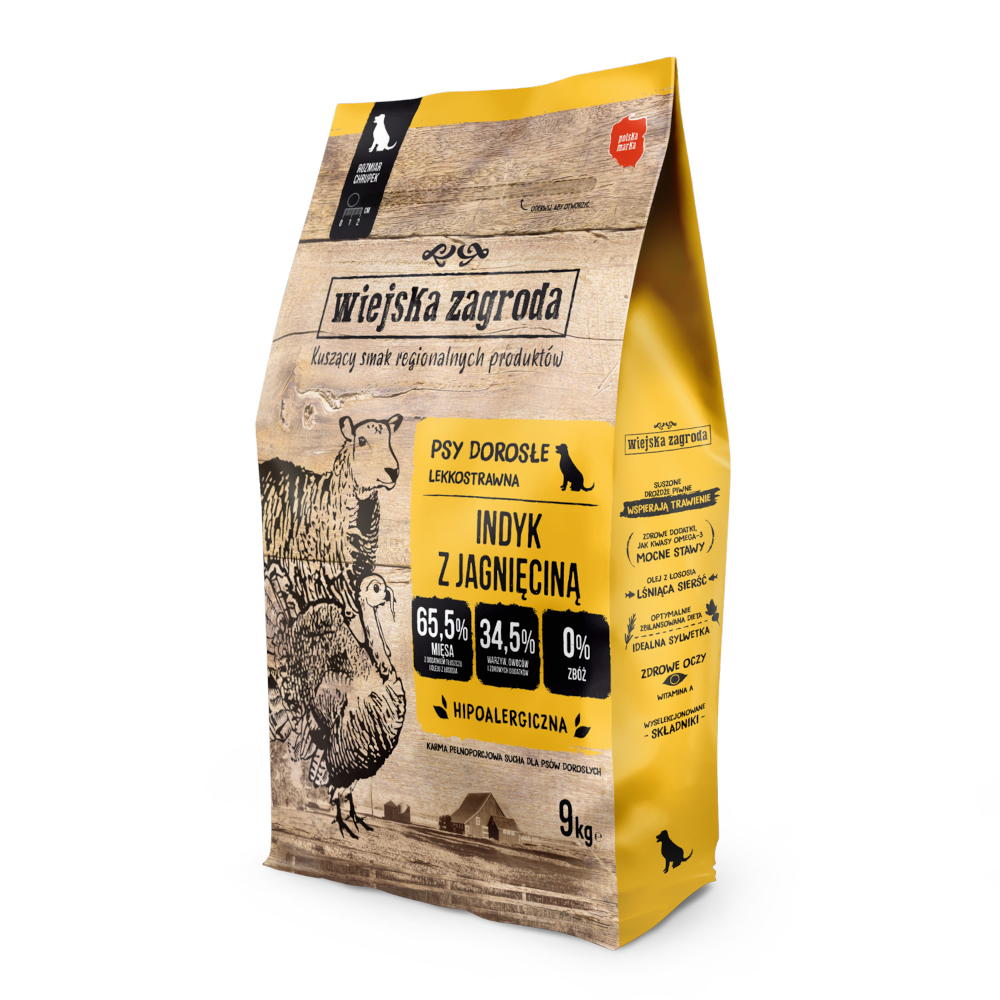 Wiejska Zagroda indyk z jagnięciną 2kg/9kg/20kg – sucha karma dla psów