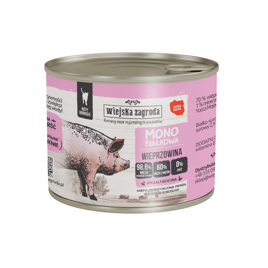 Monoproteinowe karmy mokre Wiejska Zagroda dla kota, zawierają jeden rodzaj mięsa, które plasuje się na pierwszym miejscu w składzie. Oprócz wysokiej jakości mięsa, każda formuła zawiera także wyjątkowe dodatki takie jak tauryna, które wspomagają zdrowie organizmu mruczka.