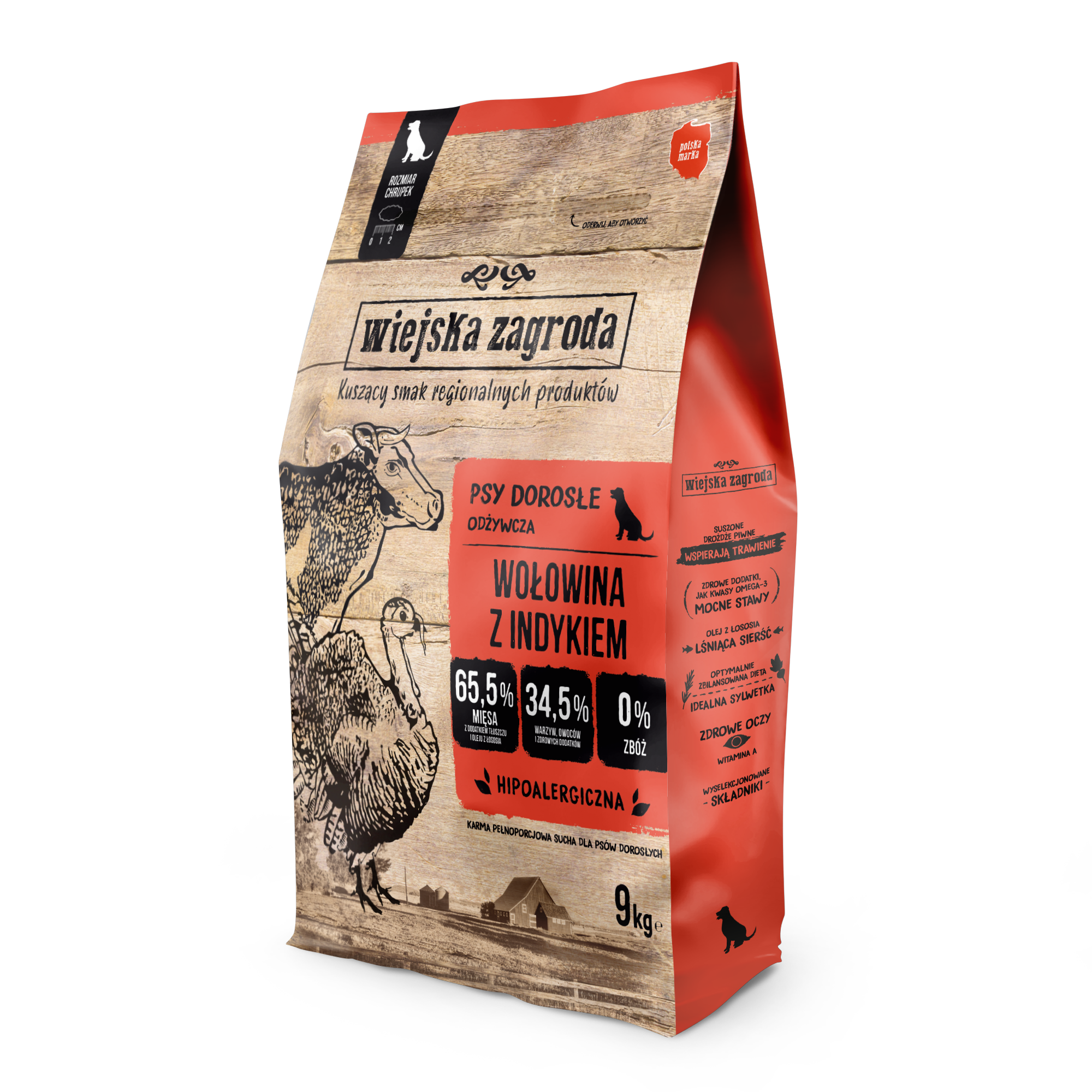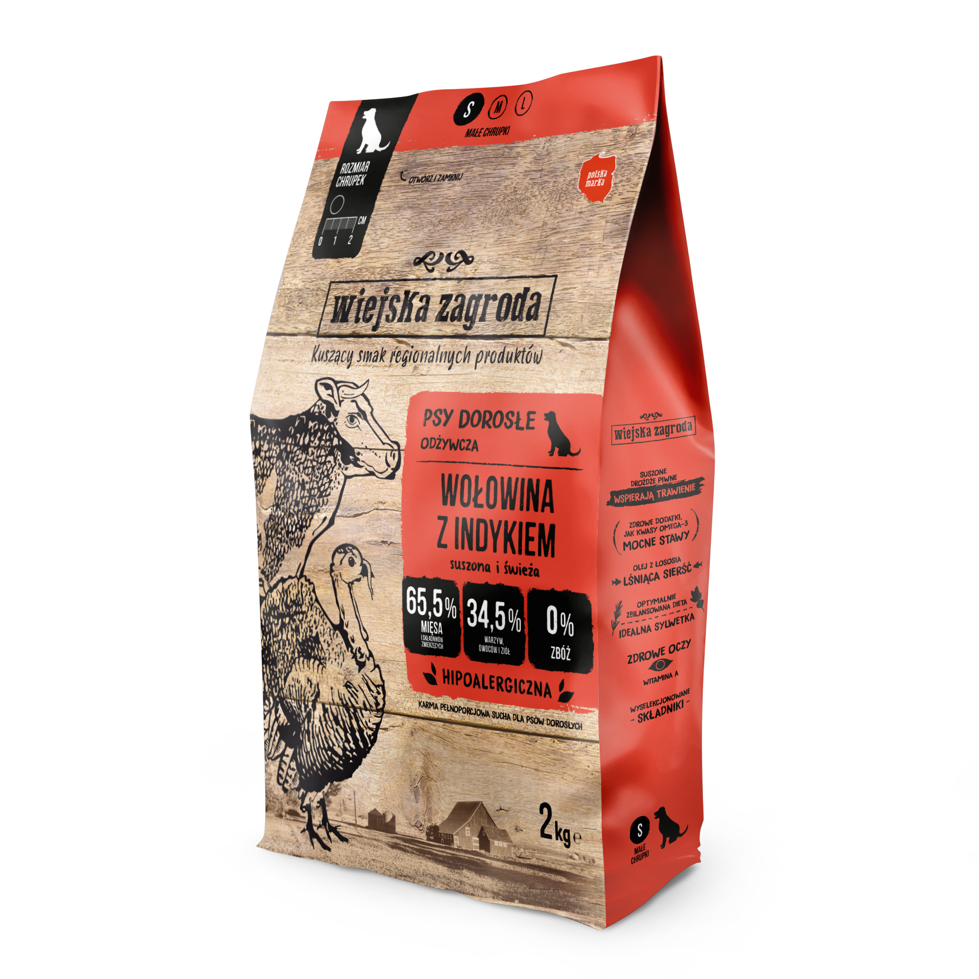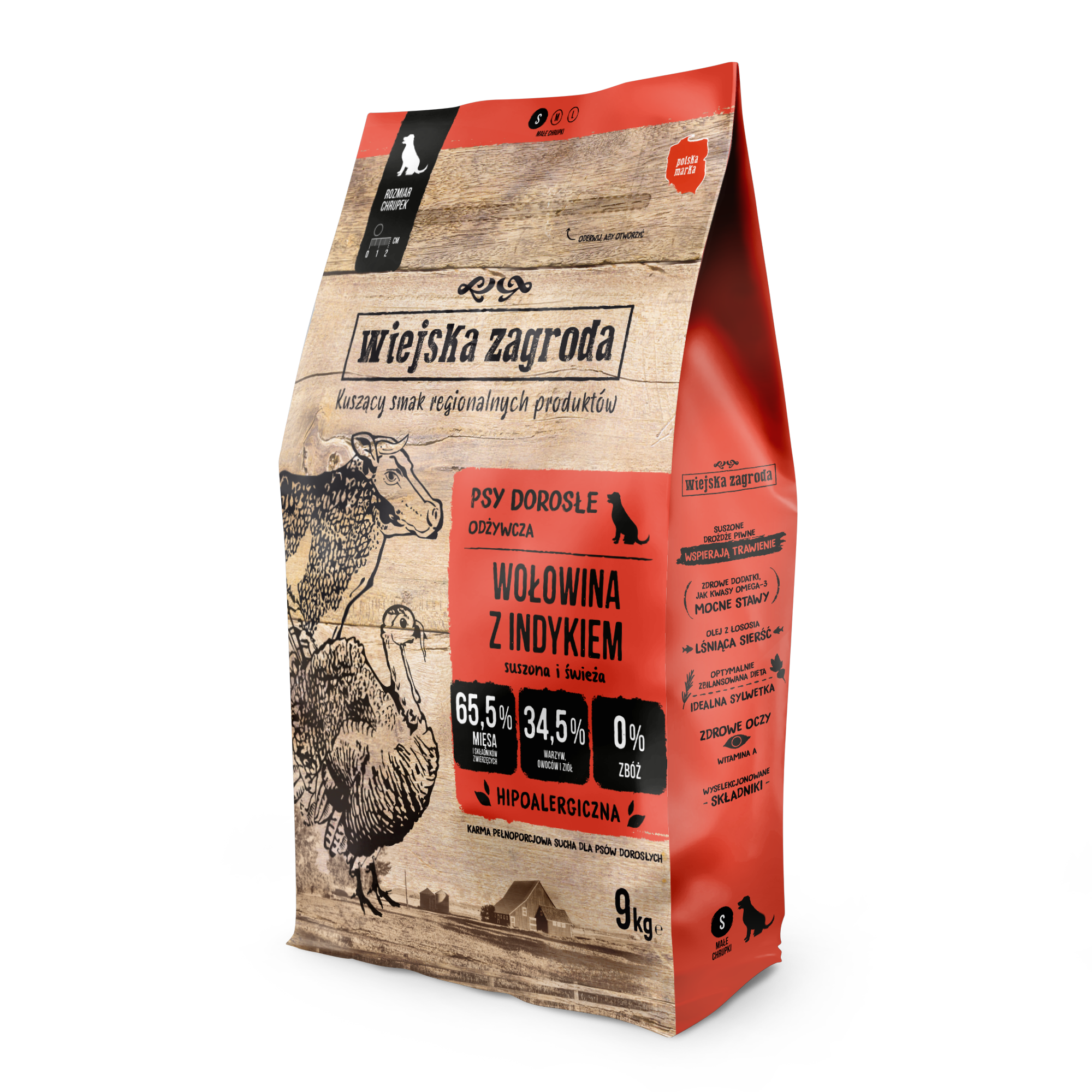 Wiejska Zagroda to polska, przygotowana z najwyższą starannością pełnoporcjowa karma dla psa. Regionalne produkty od lokalnych dostawców to gwarancja świeżości i jakości składników, z których przygotowywane są karmy Wiejskiej. Karmy powstały z potrzeby podania naszym psom tego, czego najbardziej potrzebują, czyli mięsa! To właśnie mięso stanowi minimum 65,5% składu każdej z karm.